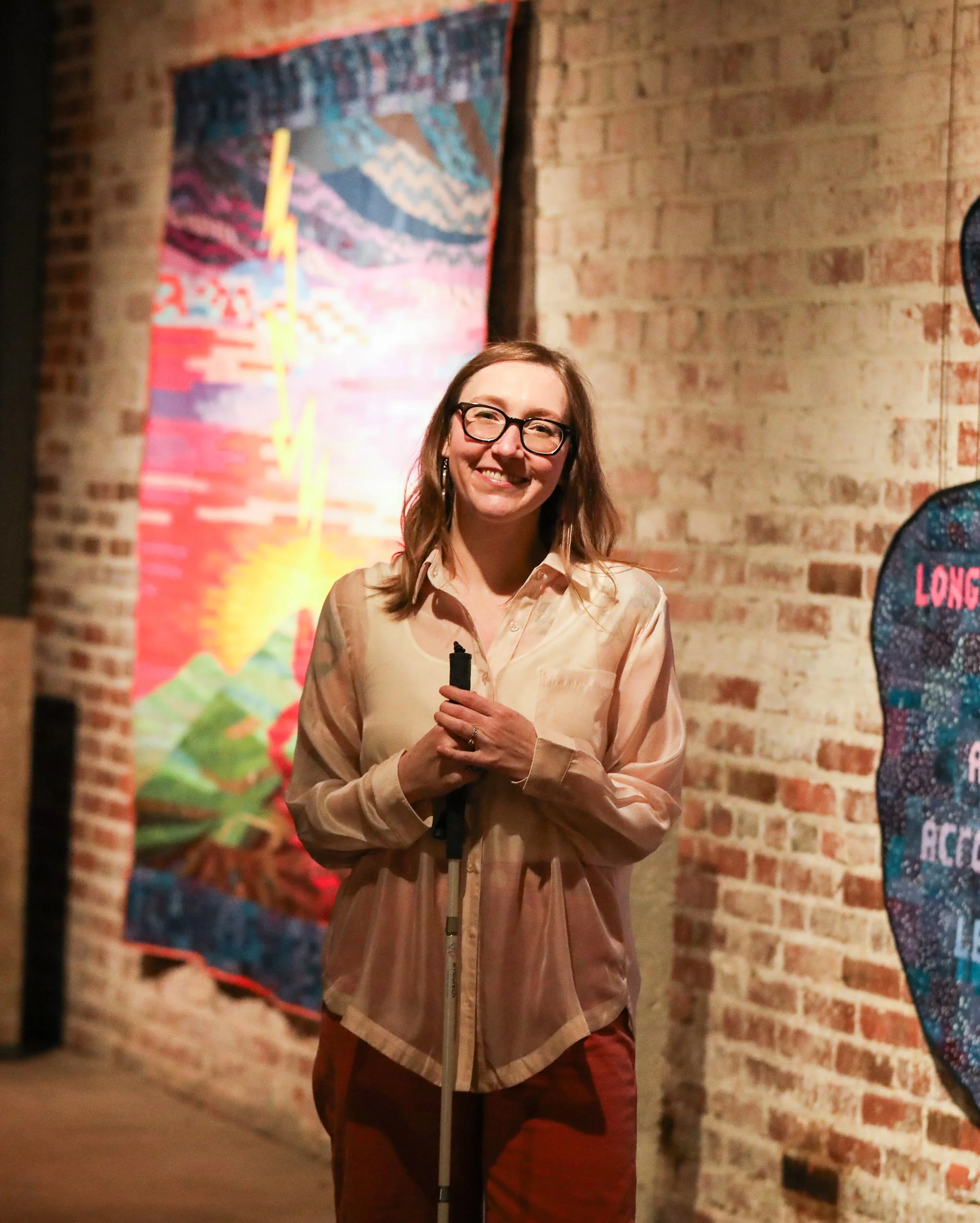 Lindsay Lion Lord (b. 1985) is a neurodivergent art witch based in Wichita, KS. She holds a BFA in Visual Art from The University of Kansas and is an MFA candidate in the Fibres & Material Practices program at Concordia University in Montreal, QC (2025). The current focus of her research hovers around the intersections of science, magic, religion and the body. As a legally blind person with synesthesia, Lord seeks to translate her sensory experience of the world while addressing issues of trauma and healing, disability and death, systems of care, and systems of control. Lord works from a feminist, anti-oppression and disability justice lens. Her practice is rooted in drawing, and she invites the Sun (which is a star) to collaborate with her through making cyanotypes. Her work most recently finds its form in dye work, quilting, weaving and felting, and has been shown in Canada and the US.